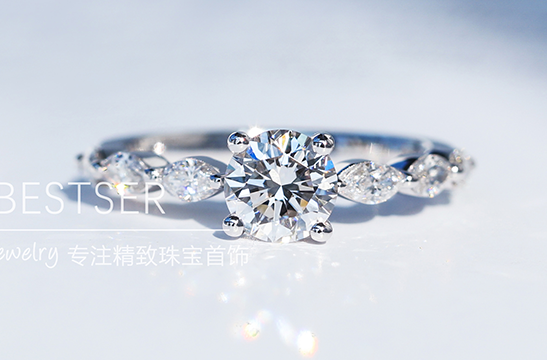四爪镶圆钻,最大程度展现钻石火彩,马眼钻臂的搭配,不仅使造型更为丰富,还使整个戒臂显的更为清透感,圆钻被高高托起,犹如“出水芙蓉”。 有一种眼缘叫可以一眼万年,有一种陪伴是一生一世。