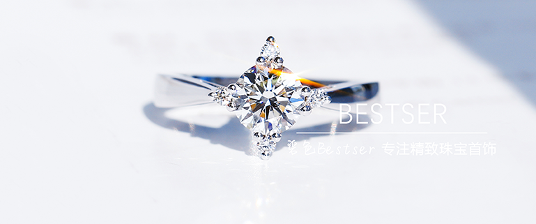 将圆钻按对角线划分,十字顶点镶嵌四颗小钻,形成一颗闪耀的北极星。斑斓的银河横跨黑夜,漫天星辰是散落在星河的记忆,而我的脑海里,只有和你的回忆。