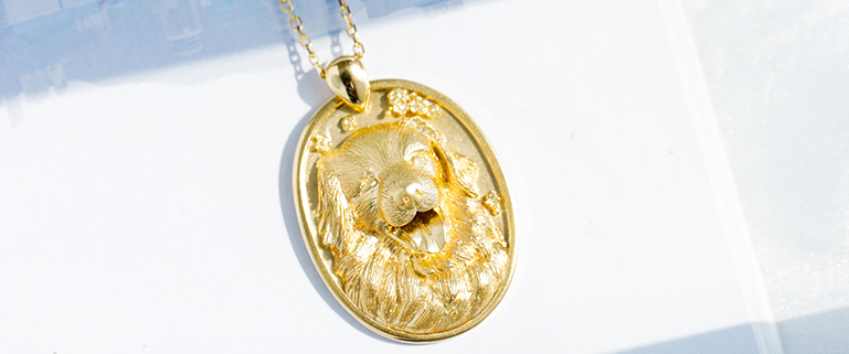 专为喜爱萌宠人士设计定制。 匠心制作,手工雕刻,呈现独一无二爱意萌宠头像。 浮雕工艺逼真灵动,18K黄金材质珍贵恒久,极具收藏性。